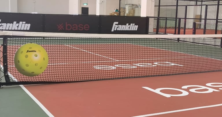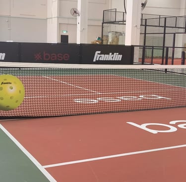 To showcase sponsorship and branding within the pickle board court area, we have printed a 291 cm x 108 cm poster and placed it on a PP hollow board (5mm) with eyelets to secure around the fence area of the pickle ball court. This enhances the image of the court area. At the net area, we use a lighter material which is a 5mm foamboard to showcase branding of both the sponsor and the company.